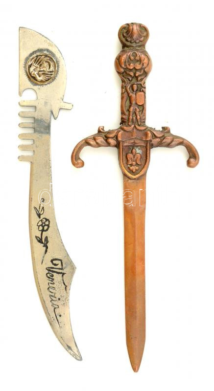 Leírás: 2 db levélbontó, az egyik Velence motívummal, h: 18,5 cm