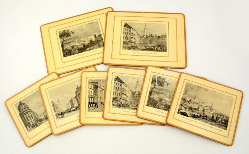 Leírás: Alátétek régi metszetek nyomataival, összesen:8 db, 30×22 (2×), 21×18 cm (6×)