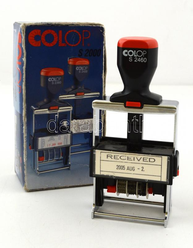 Colop S 2000 dátumbélyegző, működőképes állapotban, eredeti dobozában,... https://www.darabanth.com/hu/282-Gyorsarveres/282.0/Festmeny-mutargy-papirregiseg-egyeb/Bolhapiac~19/Colop-S-2000-datumbelyegzo-mukodokepes-allapotban-eredeti-dobozaban-17x8x4-cm~II1459043