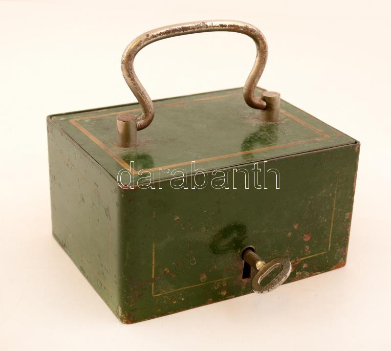 Leírás: Kulcsos, zárható fém pénzkazetta 14x11 cm