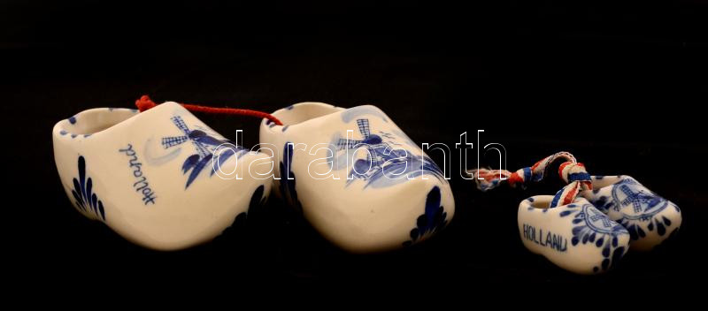 Leírás: Mini holland porcelán "fapapucsok", kék mintával, 2 pár, hibátlanok, h: 4 és 8 cm