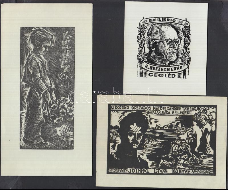Leírás: 5 db ex libris, különböző technikák, papír, kettő jelzett a dúcon, 6×6-15×8 cm