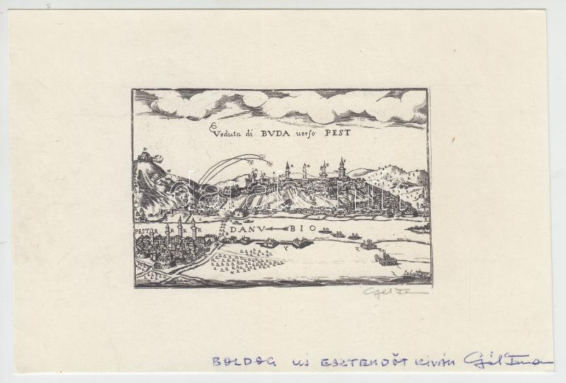 Leírás: Gál Ferenc(?-?): Veduta di Buda. Klisé, papír, jelzett, 6x9 cm