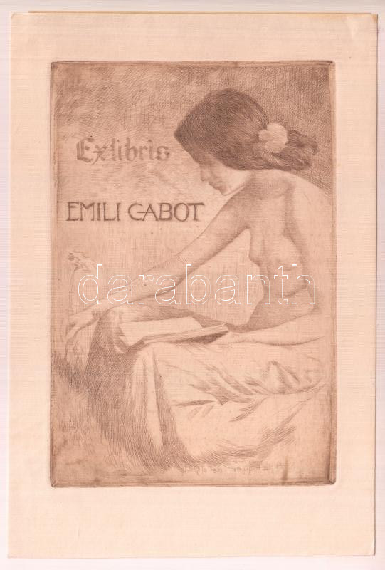 Leírás: Olvashatatlan jelzéssel: Erotikus ex libris Enili Gabot. Rézkarc, papír, 12×8 cm