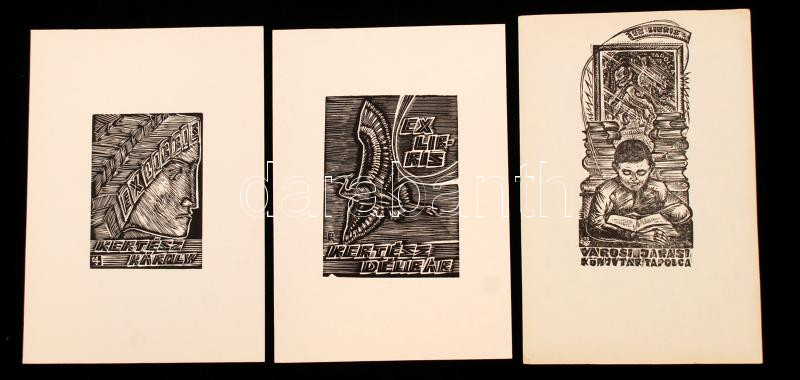 Trojan Marian József (1931-) : Vegyes ex libris tétel, klisé, 2db papír, különböző méretben, 8x6cm; Nagy László Lázár (1935-): Ex libris, fametszet, dúcon jelzett, papír, cca 11x6cm