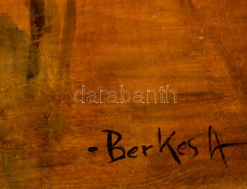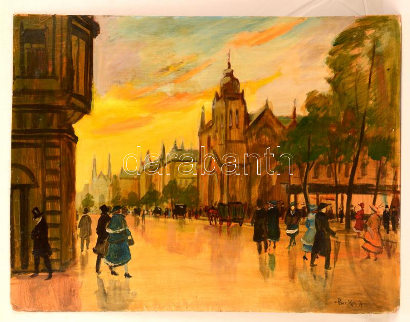 Leírás: Berkes jelzéssel: Sugárút. Olaj, karton, szélei sérültek, 58×78 cm