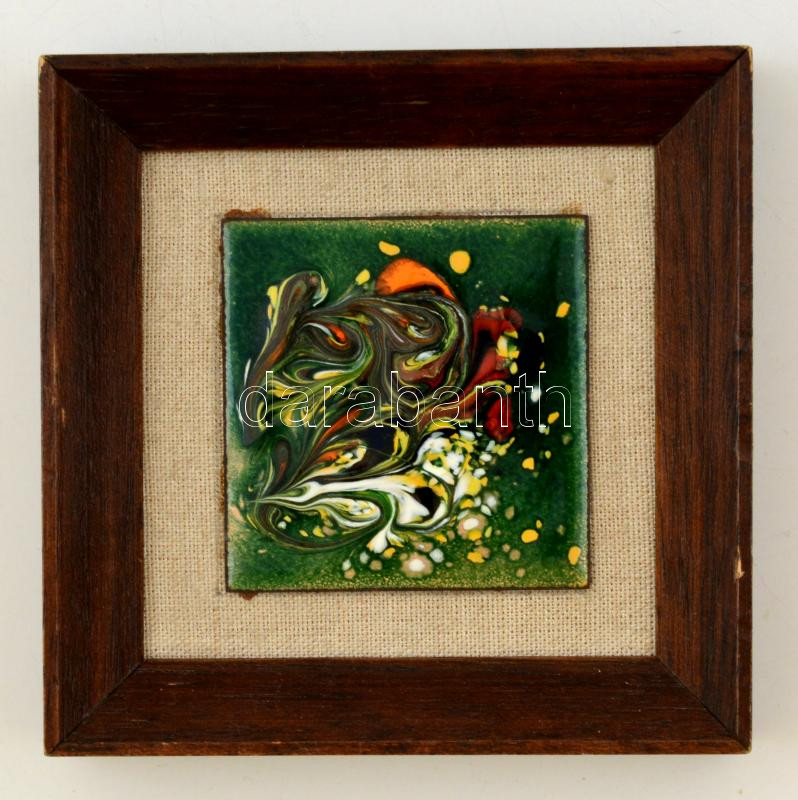 Leírás: Jelzés nélkül: Színek. Tűzzománc, fém, jelzett, fa keretben, 7x7 cm