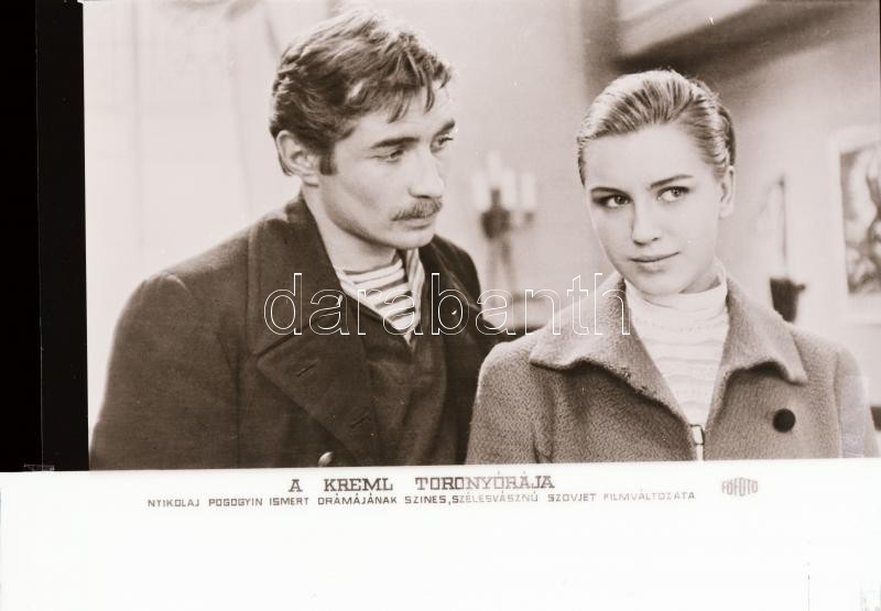 ,,A Kreml toronyórája" című film állóképei, 29 db negatív, ezekről készültek a mozik előcsarnokában kiállított, új filmek reklámozására szolgáló fényképek, 6x7 cm