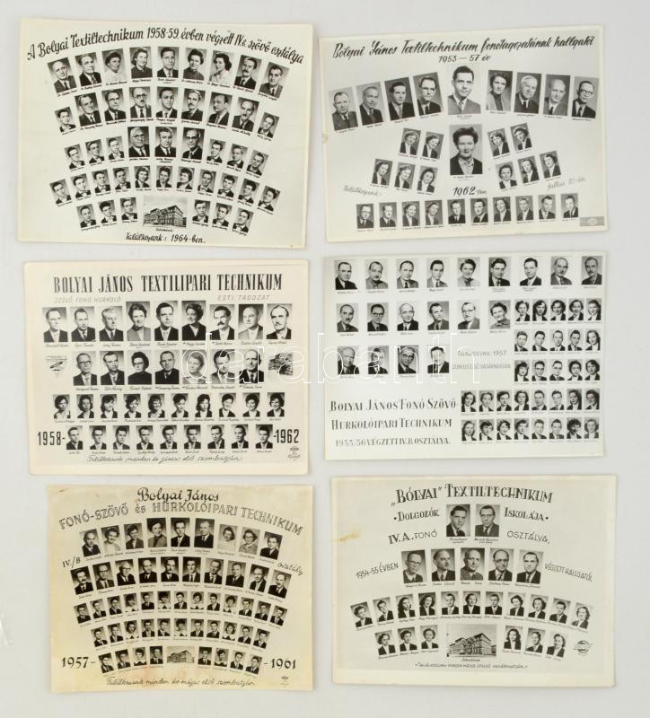 Leírás: 1954-1962 "Bólyai János Textilipari Technikum" iskola végzős osztályainak tablóképei, 6 db, 18x24 cm.