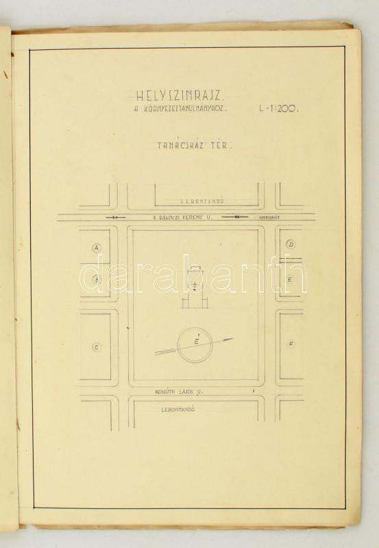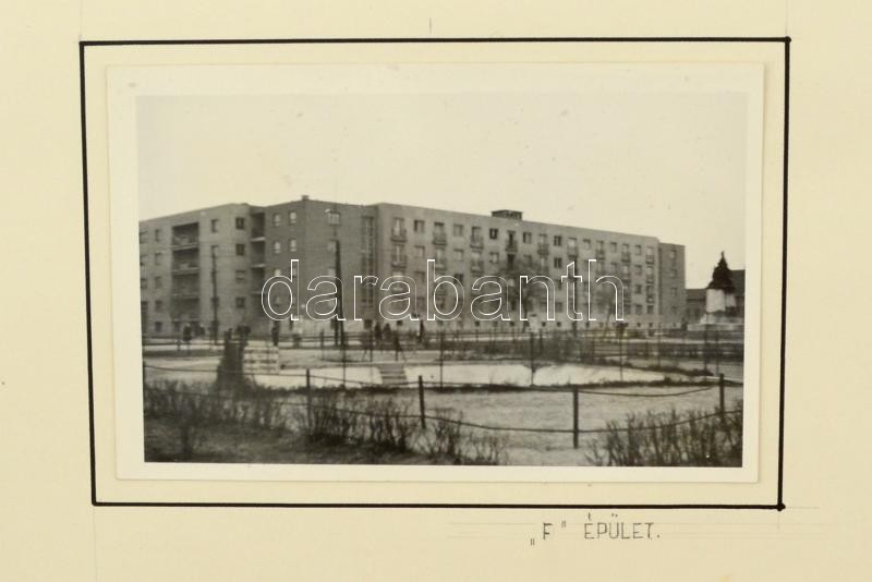 Leírás: 1955 A Vásárcsarnok Csepelen, környezettanulmány, diplomaterv, tervrajzzal, 11 db fotóval, 9x14 cm