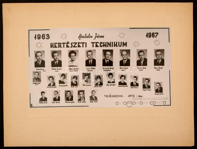 1967 Asztalos János Kertészeti Technikum tanári kara és végzős növendé... https://www.darabanth.com/hu/282-Gyorsarveres/282.0/Festmeny-mutargy-papirregiseg-egyeb/Foto~31/1967-Asztalos-Janos-Kerteszeti-Technikum-tanari-kara-es-vegzos-novendekei-kistablo-24-neve~II1454841