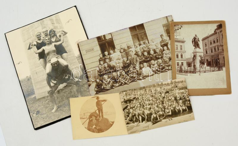 Leírás: cca 1920-1950 5 db különféle fotó, csoportképek, közte keményhátú is, különböző méretben