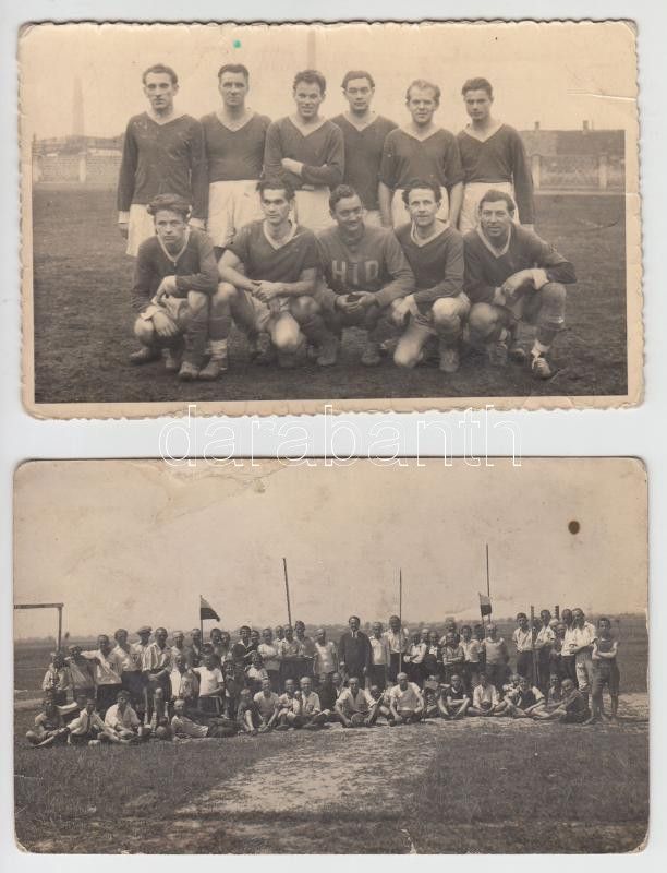 cca 1920-1950 Futballcsapatok, 2 db fotólap, 8,5x13,5 cm https://www.darabanth.com/hu/282-Gyorsarveres/282.0/Festmeny-mutargy-papirregiseg-egyeb/Foto~31/cca-1920-1950-Futballcsapatok-2-db-fotolap-8-5x13-5-cm~II1456280