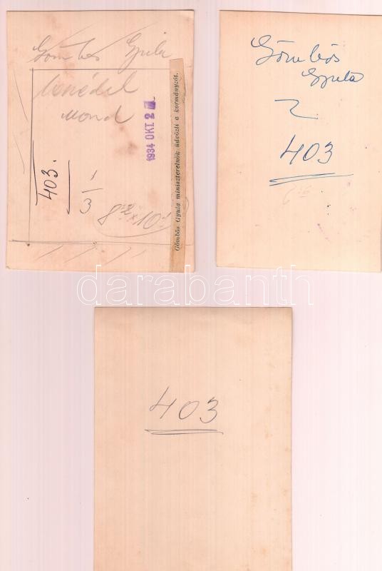 cca 1930 Gömbös Gyula (1886-1936) miniszterelnök (1932-1936) fotói, 4 ... https://www.darabanth.com/hu/282-Gyorsarveres/282.0/Festmeny-mutargy-papirregiseg-egyeb/Foto~31/cca-1930-Gombos-Gyula-1886-1936-miniszterelnok-1932-1936-fotoi-4-db-ketto-a-hatoldalan-~II1459646