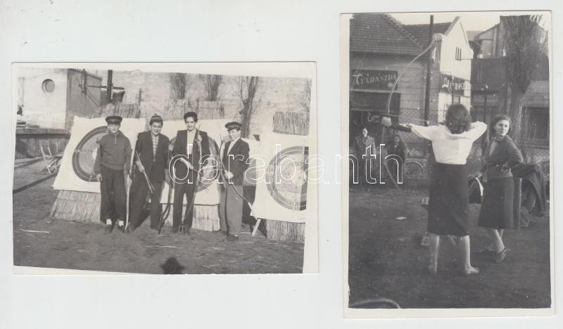 Leírás: cca 1940-1950 Íjászat, 2 db fotó, 6x9 cm