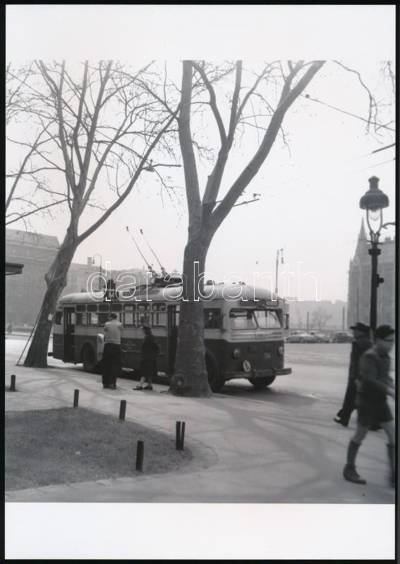 Leírás: cca 1959 Budapest, Trolibusz a Kossuth téren, korabeli negatívról készült mai nagyítás, 25x18 cm