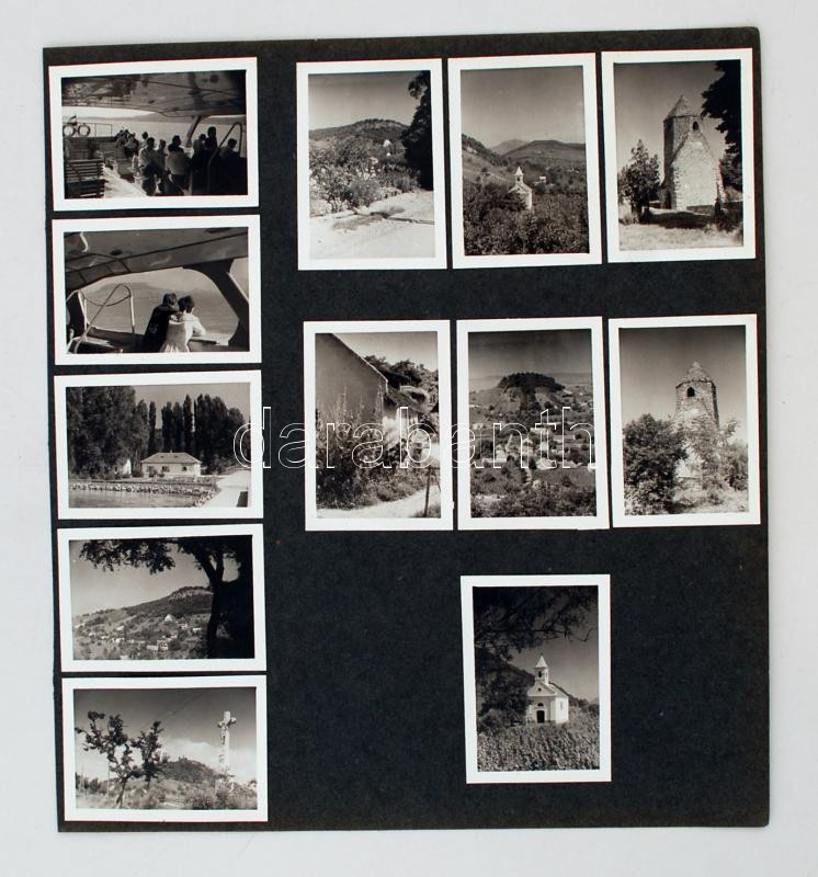 Leírás: cca 1960-1970 Balatoni, badacsonyi látképek, albumlapra ragasztva, 12 db, 6,5x4,5 cm