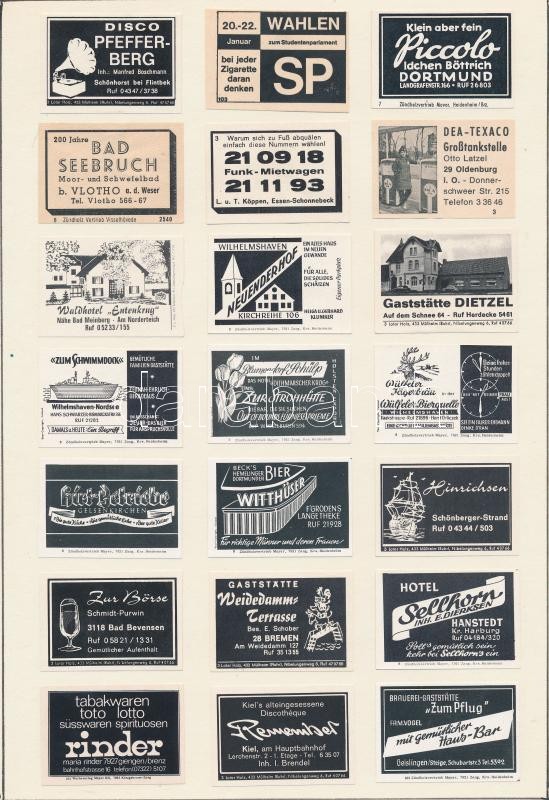 Leírás: 210 db német gyufacímke 10 db kartonlapra ragasztva (Vendéglők..stb.)