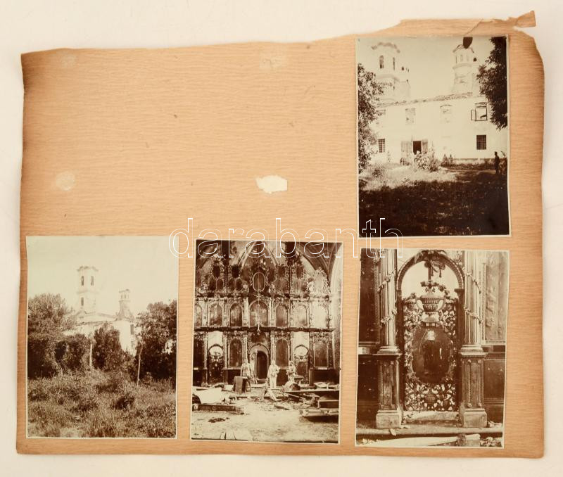 1915 A Fenek-kolostor romos épülete a Szerbia elleni hadjárat idejéből. 4 db fotó kartonon / Manastir Fenek during the Serbian campaign of World War I, 4 original photos on cardboard, 11.5×8.5 cm