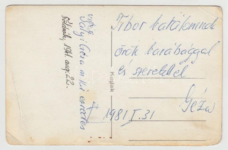 Leírás: 1941 Sályi Géza magyar királyi ezredes egészalakos portréja, fotólap, hátulján feliratozva, 14×9 cm