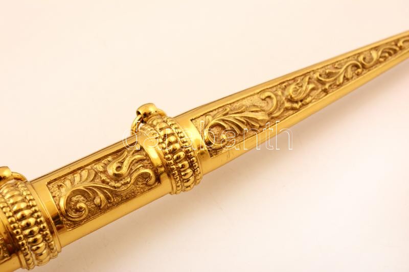 Leírás: 2010 A Belügyminiszter dr. Pintér Sándor által adományozott dísztőr és hüvely, eredeti díszdobozában, h:34 cm