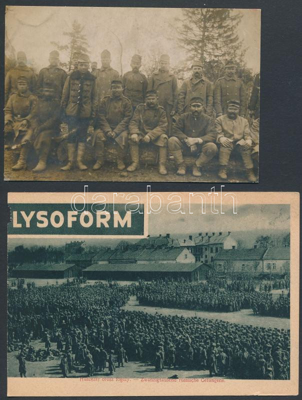 Leírás: cca 1914-1918 Hadifoglyok, 2 db fotó, az egyik feliratozva, különböző méretben