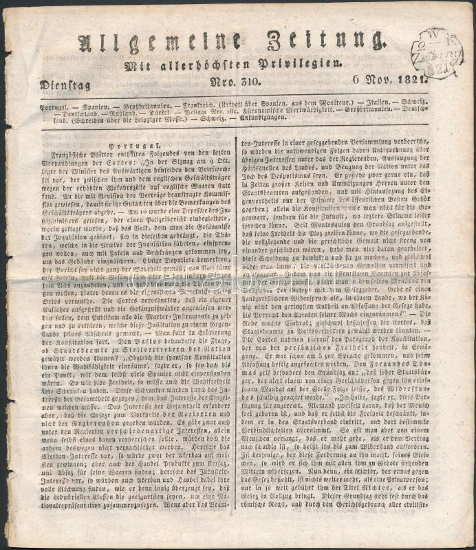 Leírás: 1821 Allgemeine Zeitung Nr. 310. szignettával