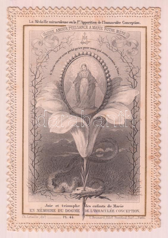 1908 1 db szentkép, Sátánt tipró Szűzanyával, csípkés szélekkel, 9x6 c... https://www.darabanth.com/hu/282-Gyorsarveres/282.0/Festmeny-mutargy-papirregiseg-egyeb/Nyomtatvanyok~10/1908-1-db-szentkep-Satant-tipro-Szuzanyaval-csipkes-szelekkel-9x6-cm~II1460486