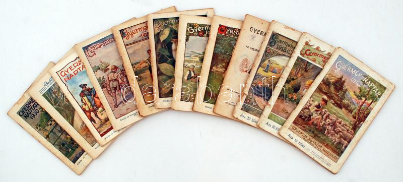 Leírás: 1910-1930 a Gyermeknaptár 12 évfolyama, Bp., Országos Állatvédő Egyesület. Papírkötésben, példányonként változó, többnyire jó állapotban.