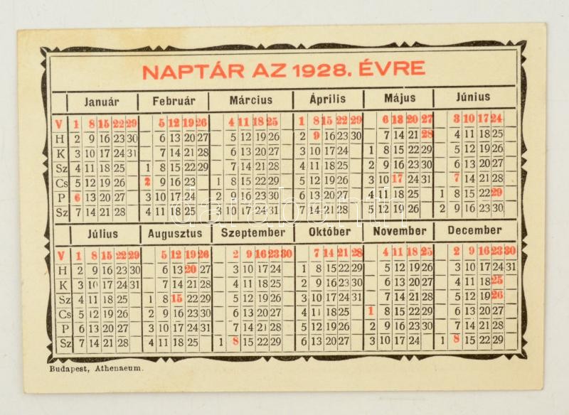 1928 Előfizetői kártyanaptár https://www.darabanth.com/hu/282-Gyorsarveres/282.0/Festmeny-mutargy-papirregiseg-egyeb/Nyomtatvanyok~10/1928-Elofizetoi-kartyanaptar~II1457488