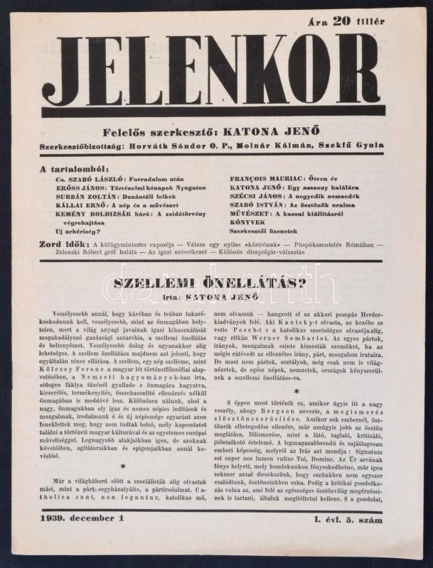 Leírás: 1939 A Jelenkor, antifasiszta lap I. évfolyamának 5. száma, 12p