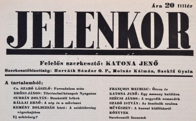 1939 A Jelenkor, antifasiszta lap I. évfolyamának 5. száma, 12p https://www.darabanth.com/hu/282-Gyorsarveres/282.0/Festmeny-mutargy-papirregiseg-egyeb/Nyomtatvanyok~10/1939-A-Jelenkor-antifasiszta-lap-I-evfolyamanak-5-szama-12p~II1457762