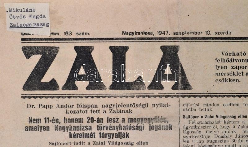 Leírás: 1947 Nagykanizsa, A Zala című újság 52. évfolyamának 19. és 163. száma, egyikben Kanizsa törvényhatósági jogának kérelméről