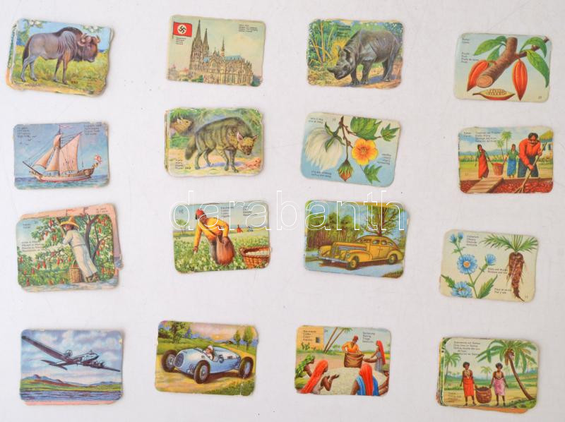 70 db vegyes témájú (repülők, hajók, földművelés) színes gyűjtőkártya, köztük lithok is. Papierhandlung Huber & Lerner Wien papírdobozban / mixed collectors' cards in paper box