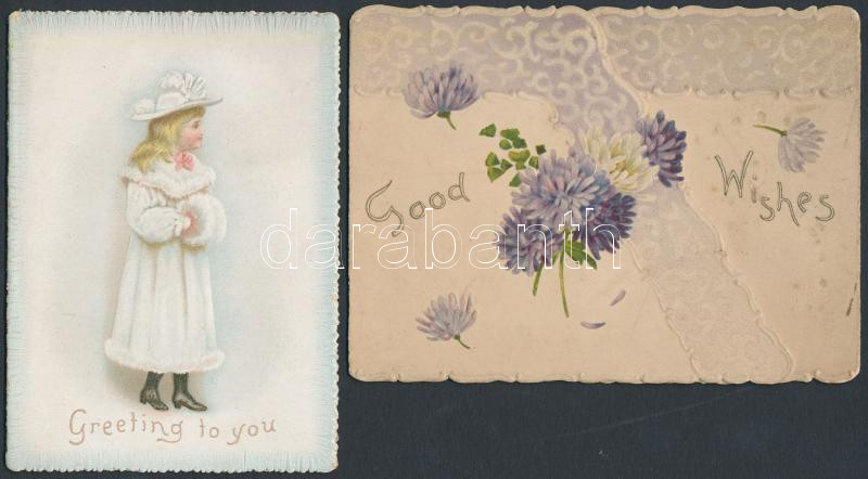Leírás: cca 1900 2 db dombornyomott, litho üdvözlő kártya / 2 itho greeting cards