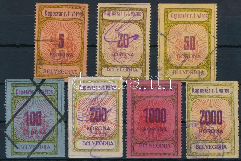 Leírás: 1920-1923 7 db klf Kaposvár városi okmánybélyeg (~20.000)