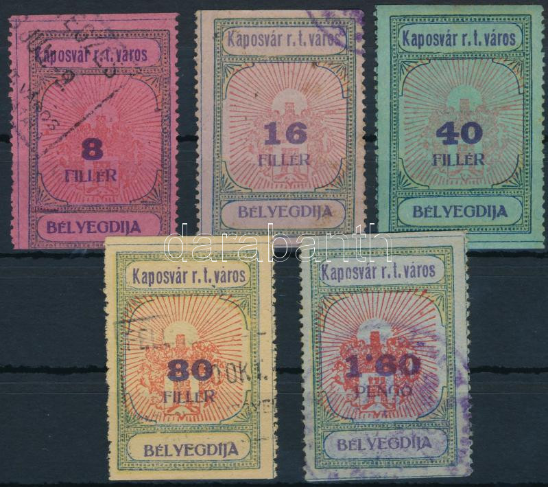 Leírás: 1927 Kaposvár városi 5 db-os okmánybélyeg sor (13.000)