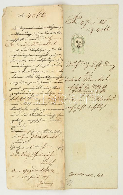 1857 Osztrák okmány 6kr C.M. okmánybélyeggel https://www.darabanth.com/hu/282-Gyorsarveres/282.0/Festmeny-mutargy-papirregiseg-egyeb/Okmanyok~25/1857-Osztrak-okmany-6kr-CM-okmanybelyeggel~II1456115