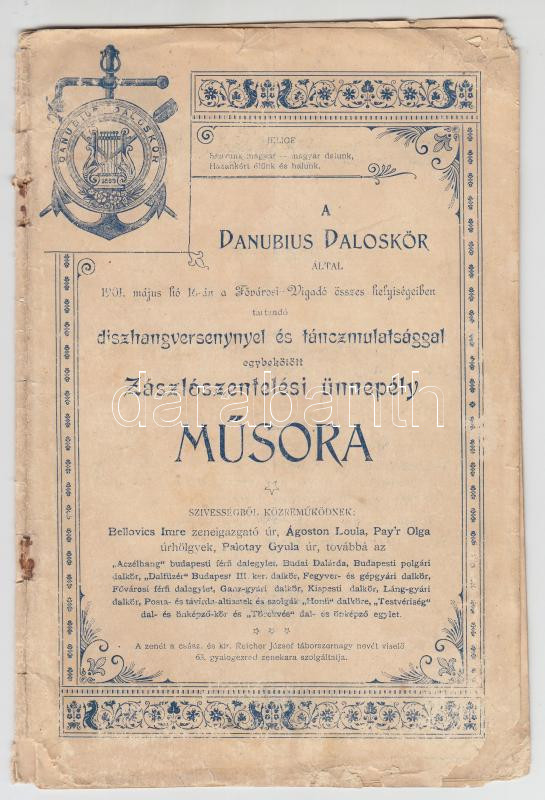 1901 A Danubius Daloskör díszhangversenyének, táncmulatságának és zász... https://www.darabanth.com/hu/282-Gyorsarveres/282.0/Festmeny-mutargy-papirregiseg-egyeb/Okmanyok~25/1901-A-Danubius-Daloskor-diszhangversenyenek-tancmulatsaganak-es-zaszloszentelesi-unnepC3~II1457419