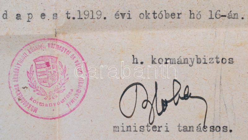 Leírás: 1919 Bp., Irodasegédtisztnek szóló szolgálattételre való felszólítólevél