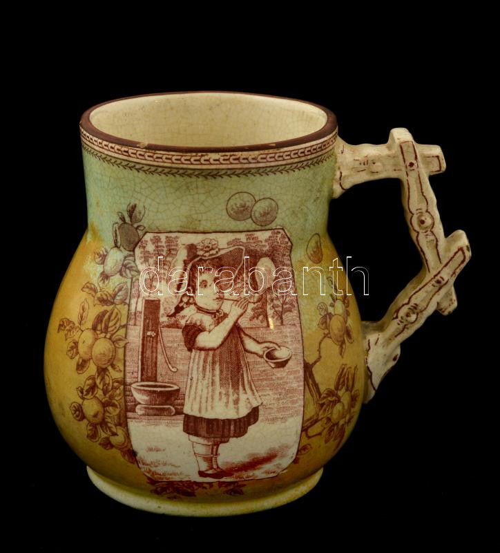 Leírás: Old Hall gyümölcsös kiöntő, matricás, lepattanásokkal, máz alatti repedésekkel, jelzett, m: 10 cm