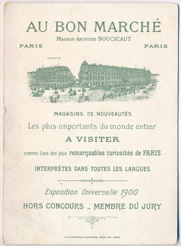 cca 1910 Au Bon Marché, francia litho reklám kártya kétoldalas grafiká... https://www.darabanth.com/hu/282-Gyorsarveres/282.0/Festmeny-mutargy-papirregiseg-egyeb/Reklam~32/cca-1910-Au-Bon-Marche-francia-litho-reklam-kartya-ketoldalas-grafikaval-15C39711-cm~II1418606