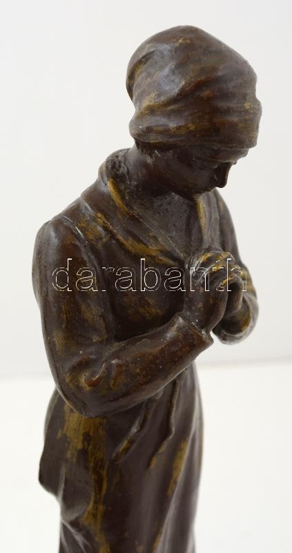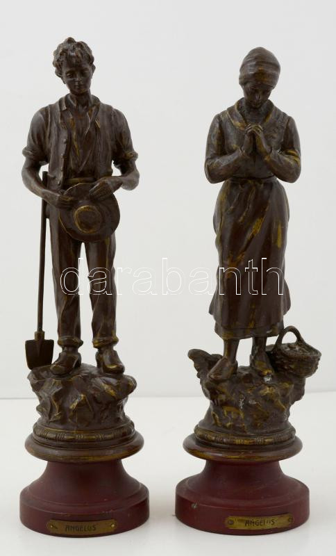Leírás: Francia spiáter imádkozó pár ( 2db), jelzett (Angelus), kopott, férfinak kis lyukkal a fején, fém talpazaton, m:30 cm (2×)