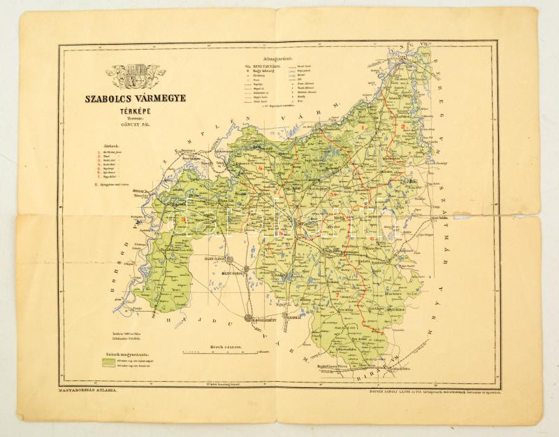 cca 1910 Szabolcs vármegye térképe, 1:540.000, tervezte Gönczy Pál, Po... https://www.darabanth.com/hu/282-Gyorsarveres/282.0/Festmeny-mutargy-papirregiseg-egyeb/Terkepek~7/cca-1910-Szabolcs-varmegye-terkepe-1540000-tervezte-Gonczy-Pal-Posner-Lajos-es-Fia-a-haj~II1458841