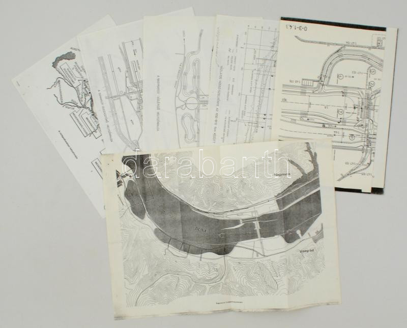 Leírás: cca 1980 Vegyes vízügyi térkép tétel: a nagymarosi vízlépcső helyszínrajza, Duna-szabályozás térképe, stb., összesen 6 db, különböző méretben