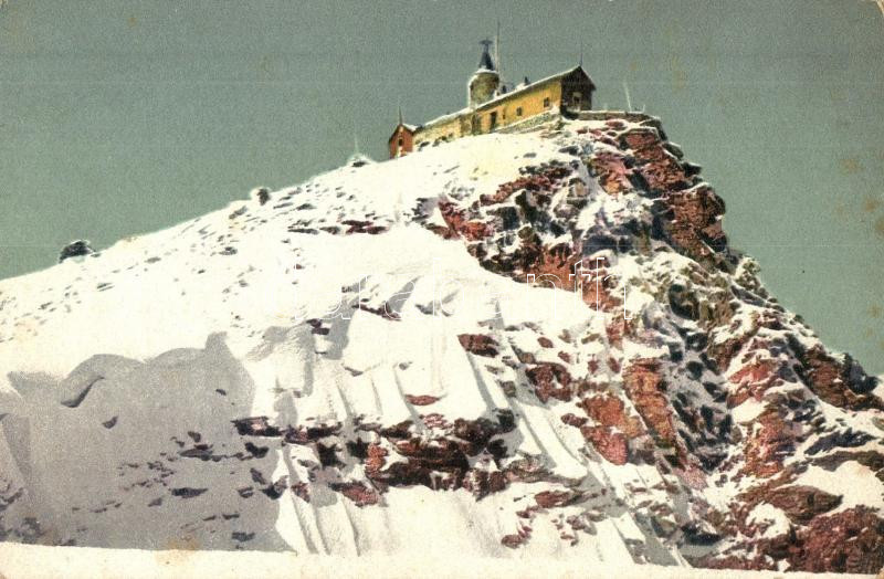 Leírás: Hoher Sonnblick, Schutzhaus und meterolog. Station / observatory, weather station, refuge, guard house, mountain peak, Künstlerkarte No. 2063., art postcard (worn corner)