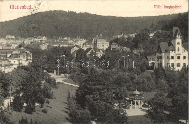 Marianske Lazne, Marienbad; Villa Luginsland https://www.darabanth.com/hu/282-Gyorsarveres/282.0/Kepeslapok/Cseh-Koztarsasag~200023/Marianske-Lazne-Marienbad--Villa-Luginsland~II1457360