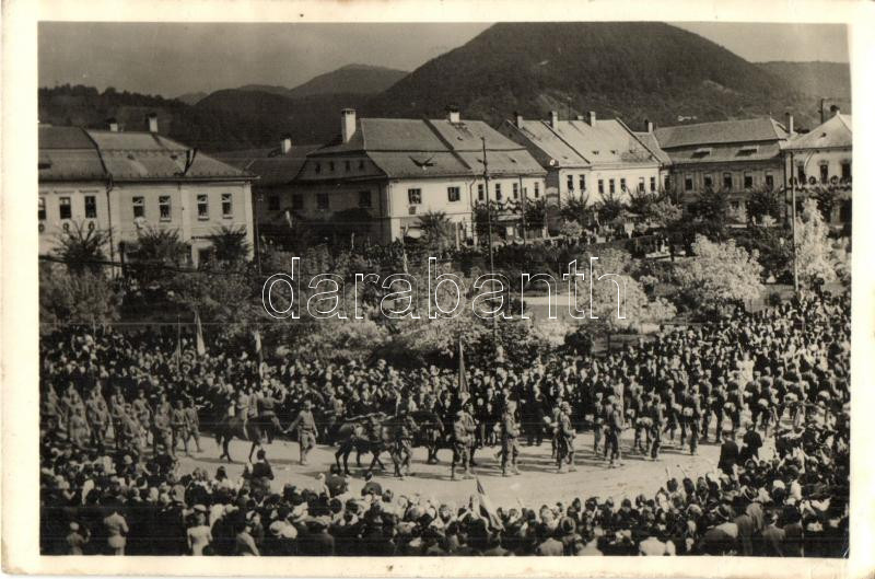 1940 Nagybánya, Baia Mare; bevonulás / entry of the Hungarian troops, ... https://www.darabanth.com/hu/282-Gyorsarveres/282.0/Kepeslapok/Erdely~200008/1940-Nagybanya-Baia-Mare-bevonulas-entry-of-the-Hungarian-troops-1940-Nagybanya-visszatert~II1458231
