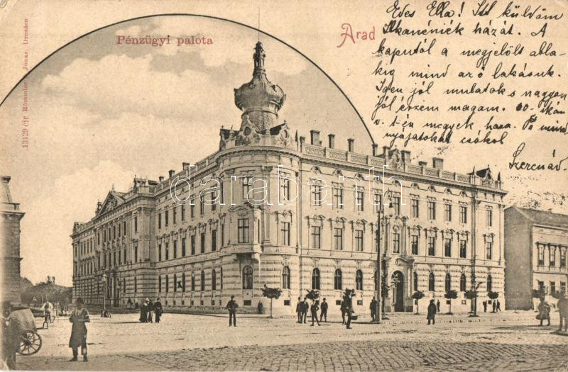 Arad; Pénzügyi palota, Bömmler & Jonas kiadása / Financial palace ... https://www.darabanth.com/hu/282-Gyorsarveres/282.0/Kepeslapok/Erdely~200008/Arad-Penzugyi-palota-Bommler-Jonas-kiadasa-Financial-palace-EK~II1455467