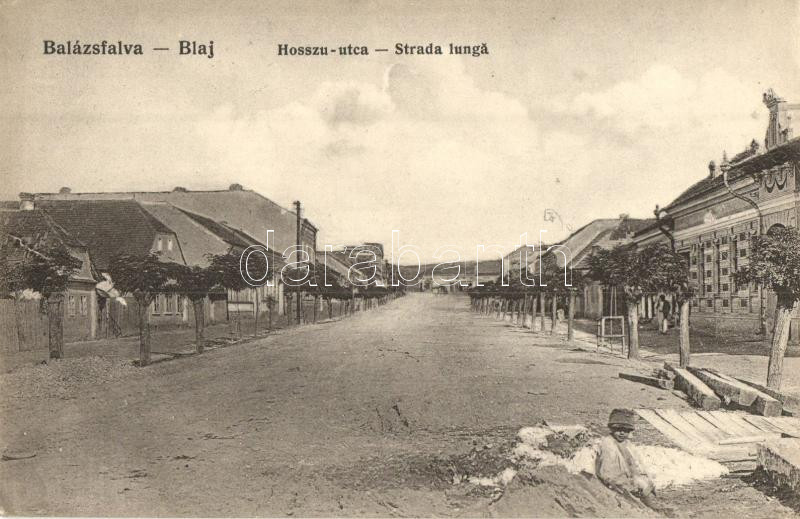 Balázsfalva, Blaj; Hosszú utca, kiadja Nyerges István / street (EK) https://www.darabanth.com/hu/282-Gyorsarveres/282.0/Kepeslapok/Erdely~200008/Balazsfalva-Blaj-Hosszu-utca-kiadja-Nyerges-Istvan-street-EK~II1458206